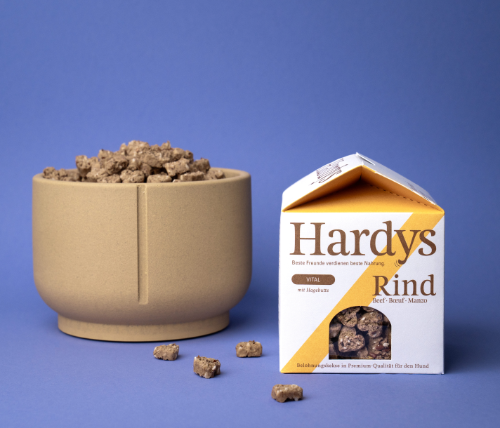 Für Hardys ist hochwertige Hundenahrung eine Herzensangelegenheit. Und das kann man bei unseren Belohnungskeksen nicht nur sehen, sondern auch schmecken: Neben frischem Fleisch aus vorwiegend deutschen Regionen enthalten die Belohnungskekse weitere wichtige Inhaltsstoffe wie Obst, Gemüse und Kräuter in Lebensmittelqualität.